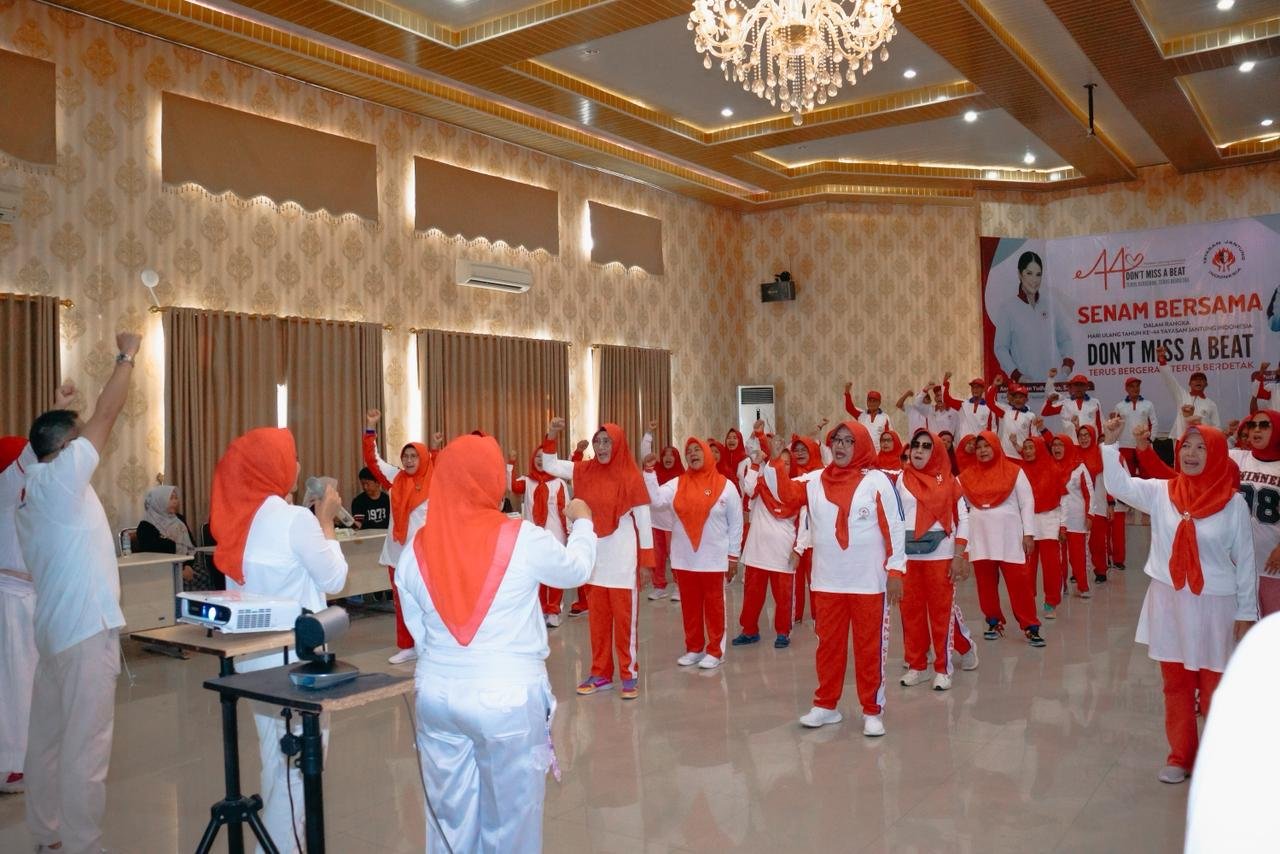 PODIUM, BANDARLAMPUNG,  –Dalam rangka memperingati Hari Ulang Tahun ke-44 Yayasan Jantung Indonesia (YJI), Ketua YJI Provinsi Lampung, Purnama Wulan Sari Mirza, menggelar kegiatan senam bersama dan pemeriksaan kesehatan di Auditorium Dinas Kesehatan Provinsi Lampung, Minggu (9/11/2025).