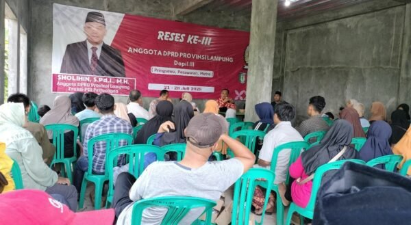 PODIUM, BANDARLAMPUNG, – Anggota DPRD Provinsi Lampung dari Fraksi PDI Perjuangan, Solihin, menggelar kegiatan Reses di Kelurahan Yosodadi, Kecamatan Metro Timur, Kota Metro, pada Rabu (23/07/2025). Kegiatan ini dihadiri oleh aparatur kelurahan, tokoh agama, tokoh masyarakat, dan warga setempat.