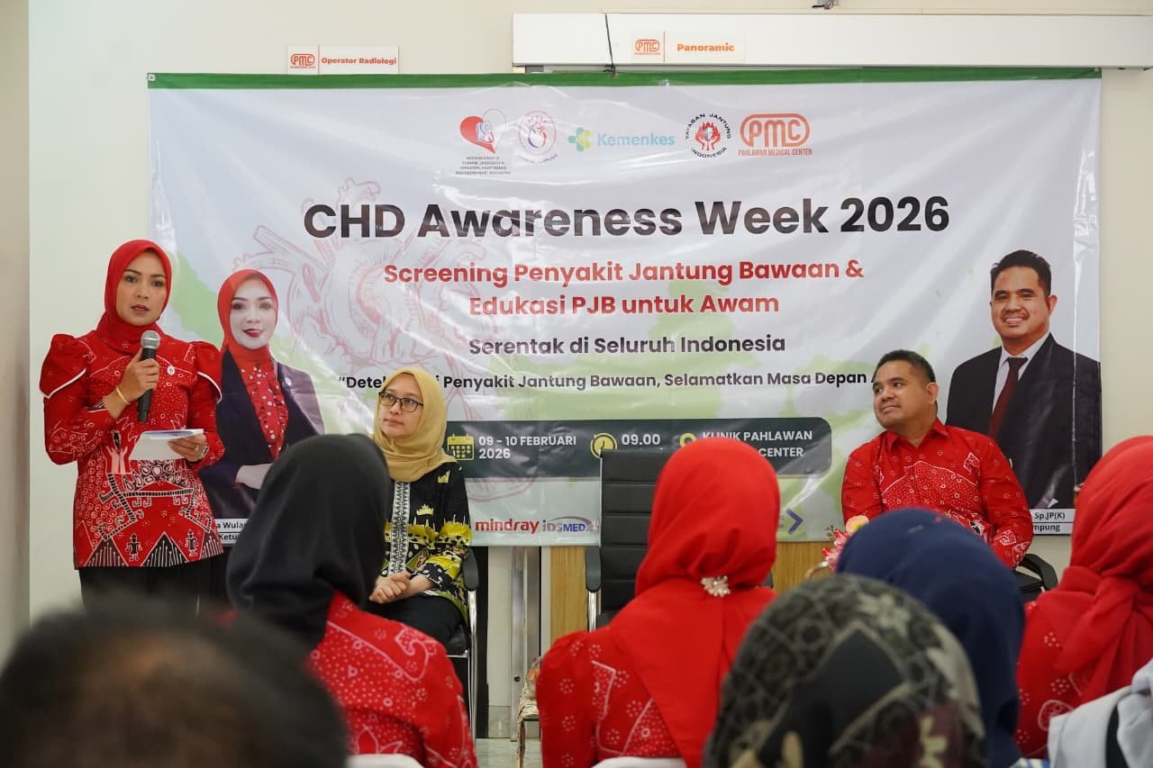 Komitmen tersebut ditegaskan oleh Ketua YJI Provinsi Lampung, Purnama Wulan Sari Mirza dalam Congenital Heart Disease (CHD) Awareness Week atau Pekan Kesadaran Penyakit Jantung Bawaan 2026 yang dilaksanakan di Klinik Pahlawan Medical Center (PMC), Bandar Lampung, Senin (9/2/2026).